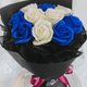 质感蓝10朵中小型香皂花束,花束都附精美提袋。花束高度大约30厘米,我们能提供定制增加香皂花的数量与花束大小,下单前请先确认,若有需要大量采购订制,欢迎私讯或跟我们聊聊。