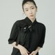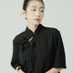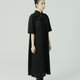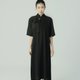 心斋坐忘,黑色新中式旗袍领蝴蝶结长洋装