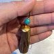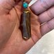 特别挑选一块重油野生老挝沉香,上下二面使用日本的漆灰贴金工艺技法包覆,再搭配绿松石做为一个小吊件,造型精巧,贴金技法和沉香的搭配更是相得益彰!