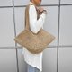 This large tote bag for women is crocheted natural jute hemp twine with one internal pocket for the phone and keys. The crochet bag is perfect for shopping, beach, walk, trips, or everyday errands. You can wear this trendy shoulder bag and keep your hands free.