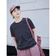 休闲的针织T,圆领,落肩袖,线条柔和,松弛有度,可以自然地过渡到全身。沿着袖口,袖口反面用了一块红黑波点撞色,翻卷起来,红色的袖口让夏日有小欢喜。