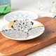 由九谷烧作家石冨俊二郎监修的〈金白金细描彩〉,融合了釉里金彩、色绘金彩、细描等多种釉上彩技法所绘制而成的精致艺术小皿