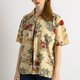 - 80年代复古纯棉阿兹特克抽象图腾男女皆宜织物短袖印花衬衫钮扣上衣 S 码
