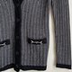 NARA CAMICIE V 领条纹开襟毛衣 - 黑色 & 灰色