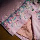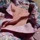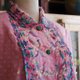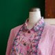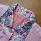 * 印花雪纺纱面料+透纱彩色刺绣于翻领、正面装饰,整件布满花朵刺绣