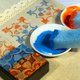 金门花砖彩印桌垫宝盒,内含两个花砖印章(6.3X6.3cm)、颜料、海绵及桌垫,手作独一无二的餐垫。
