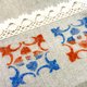 印章取材自金门古厝花砖,沾染压克力颜料或不灭印油后,即可在布料或其他可上色之材质上进行创作,可做同花色的四方接续或拼接不同花纹,颜色亦有多元变化,富有创作乐趣及独特性。