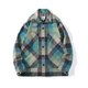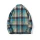 夹克采用日本棉毛混纺格纹布料制成。它采用宽松版型、果实钮扣开合和正面大贴袋。另外,后背中央下摆处有一个叠衩。