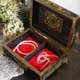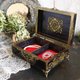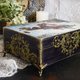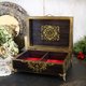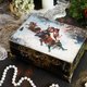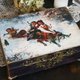 我在盖子上贴了一张快乐的女孩们在雪橇下山的照片。黑色和金色的组合增添了节日气氛。盒子内的红色天鹅绒使物品精致。复古盒子的腿以天使的形式制成,这使得盒子变得脆弱。