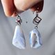 尺寸:蓝纹玛瑙原矿高约26.2-34.3mm、厚约7.4-9.3mm,总体含耳鈎约5.2-6cm,**因宝石体材大、重量重,不建议改夹式呦^^**。