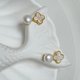 7-7.5mm的天然淡水珍珠表面泛着青光粉的炫彩光芒,纱织小姐为其配以 S5925银14k注金的微镶贝母四叶草造型配件。天然贝母呈现出这朵四叶草的光泽富有层次感且清新自然,搭配卓越的天然淡水珍珠光芒,表现端庄而秀雅的独特气质,更强调清秀美好的下颌骨轮廓。