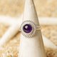 A beautiful purple stone, amethyst (purple crystal) silver ring.