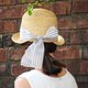 "Gigi" is a hat with a round crown and a short brim at the front, made of fine quality straw braids.