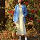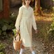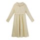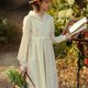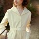 明媚浪漫带有复古气息的拿坡里黄,近似电影里笼罩的那抹柔和光芒,长裙、褶皱、翻领、椭圆日字扣...尽显法式复古韵味。全棉的面料以及里布,前胸的衣纹倒八字,斜裁,再加上大裙摆,简直耗料小能手,两侧有拼斜纹的大挖袋,腰间缩碎褶,更加灵动,袖往内固定形成一个大褶,简约随性~