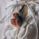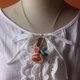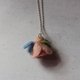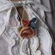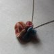 使用我自己染的天然色羊毛制成的玫瑰蝴蝶项链,搭配白色链条甜美又优雅