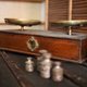 法国19世纪(约1840年)拿破仑三世古董平衡秤,秤体为桃花心木,
