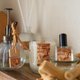 Step2. 打开塑胶塞盖后,将木盖重新转上,并以90度小心倾倒,让木盖吸收香氛液体。
