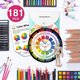安全无毒美术用品:包括24支彩色铅笔,24支水性彩色铅笔,10支压克力颜料(12毫升),10支水彩颜料(12毫升),14支油性粉蜡笔,14色粉彩,13色灰阶色调柔和的粉彩和32色粉饼。