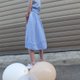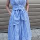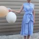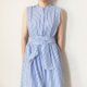 - 裹式蓝白直条纹洋装 /松紧腰围/