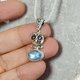 天然 蓝晕 玫瑰切月光石 猫头鹰 手工银饰坠链