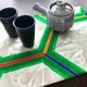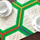 它具有传统的“菱形”图案和在优雅的白色背景下脱颖而出的扇形图案。绿、红、橙和蓝的鲜艳线条增添了亮点并使您的桌子更加明亮。