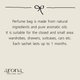 香味“JAMEL”贾梅尔 清凉、灵活、迷人,混合了薄荷、卡路里鼠尾草和迷迭香,给人一种发现、魅力、魅惑的感觉,是一款专门为取悦男士而调制的香味。 使用方法: 1. 打开铝箔包装,将香石袋放入布袋中。 2. 将香石袋放入或悬挂在所需区域。 3. 不应放置或悬挂在高温、阳光照射和空旷的地方,因为这可能会导致气味很快蒸发。使用寿命可能会缩短。 注意:请勿直接放置在皮革、橡胶板或木制家具等材料表面附近。因为当长时间暴露在外时可能会导致材料表面劣化。