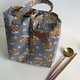 袋体展开时中间有夹层可以放餐具,也可以收纳成单人杯袋做使用