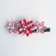 这款发夹采用つまみ细工工艺制作,并排着三朵大小不一的花朵。