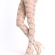 带有复古印花的半透明裤袜。此材质为 40 丹尼,因含有莱卡 (Lycra),弹性极佳。