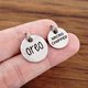 个性化宠物名牌 ✤ 由 304 不锈钢制成 ✤ 2mm 厚标签 ✤ 包括开口环尺寸 尺码 ✤1/2 英寸 ✤ 5/8 英寸 添加您的个性化请通过备注订单或 Pinkoi 消息发送给我 1. 正面:姓名 2. 背面:一个电话号码