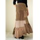 这是一件由复古丹宁与裙装拼接而成的复古拼贴长裙,为古着改造的升级再造作品。