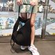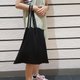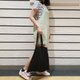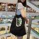 黑色简约百折单肩购物袋内有花款
