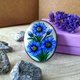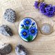 胸针上精致的手绘矢车菊展示了这些迷人野花引人注目的蓝色花瓣和精致的中心。蓝色色调唤起一种宁静和自然之美的感觉,使这枚胸针成为令人愉悦的配件。
