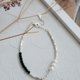 另一款以2mm的925纯银方块碎片串成,搭配淡水珍珠与黑玛瑙圆珠