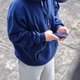 这款衣服在缝制完成后才进行染色(成衣染色),让面料、车线等所有细节都染上相同的颜色,呈现和谐的色泽。