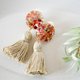 It's a tassel motif, but it's a combination of rose and leaf herbs and muted color threads, so it's not childish and can be used as a one-point accessory.