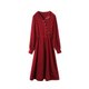 - "最经典复古的颜色除了黑色当然还属于酒红色系啦~最能凸显肤色白皙的一个颜色 V领设计更加能够显示颈部线条修饰脸型,斜门襟上几颗淡淡的白色珍珠在,在红色系里面更加亮眼,小小的三角领搭配珍珠式胸针更加显示精致和复古感 袖子也是考虑到穿着舒适。