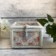The box is made in the decoupage technique. In a classic ornament with roses. In a noble gray color. The box is painted with acrylic paints. Carefully treated with multiple layers of matt acrylic lacquer to protect against moisture or penetration, providing durability for years to come. The surface of this box is specially made in various ways to create the illusion of antiquity. Decorated with a brush. The box inside is lined with soft velvet to help protect your treasure or jewelry.