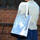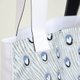 此款帆布袋采用了銀与蓝灰色的孔雀图案设计。