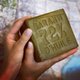 席哈尔马赛皂因为为全程手作,外观为不规则正方形,六面钢印也不会完全平整。