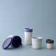 继水杯、茶杯、咖啡杯之后,MU家族再推出马克杯,让需要保温饮品、补充水分的上班族,也能拥有一个足够容量的MU系列杯具。上了细致釉料的光滑瓷盖,可以保温,亦能成为小甜点的置物盘。清淡天然的蓝粉釉色,质朴温暖,让原本中性的MU,多了些柔和的温馨感。