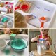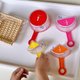 彩虹量杯也适合使用在近年非常风行的感官盆(Sensory Play, Mess Play)游戏上,不管感官盆里放的是沙子、豆子、米粒或是意大利面条、各种颜色的量杯可以当作是勺子及汤匙使用,除了在视觉上更增添缤纷色彩,也能引导小小孩认识容量的大小。