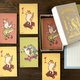 《猫咪与青蛙的悠闲消息卡组》内含三种图案,每种各20张,共计60张名片尺寸的卡片。厚实且扎实的纸质,每次拿取时都能感受到其高级质感。卡片上描绘着猫咪与青蛙跳跃嬉戏,或是在滑板上悠闲的模样。这些疗愈人心的插画,能舒缓观看者的心情,并带来笑容。