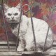 “偶然相见,眼神锐利的猫咪,褪色壁贴与花窗”