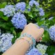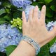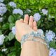 一直认为植物/花朵与天然石水晶一样有种特殊的魔力,可以疗愈疲惫的心灵。绣球花是我个人非常喜爱的花朵之一,绣球花有很多颜色,其独特的魅力为绣球花的花色会随着土壤的酸碱值改变,以近似其中一种绣球花色-淡蓝色的海蓝宝作为主石设计,绣球花喜欢土壤湿润的环境,在生长季节受益于雨水,有助于开花,特别采用蓝月光石,呈现其低调奢华的光芒,同时搭配白月光石,赫基蒙白水晶,白水晶及施华洛士奇白水晶代表雨水+不规则珍珠/贝珠及925纯银配件及白银色的黄铜镀14k配件呈现绣球花一贯的优雅。