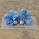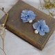 Earrings / Clip-On with blue ash hydrangea flowers and elegant cotton pearls swaying quietly.