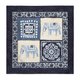 美丽的Jim Thompson 100% 纯棉方巾。方砖设计的图样分别印有两只金属花卉大象和几何与花卉图纹。方巾右下方印有Jim Thompson的签名。