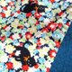 I used a blue fabric that seems to be a color of vivid and fashionable colors as well. Because I put dough and flower fabric in the middle (I put both sides in front and back) I recommend it to a cat lover.