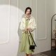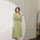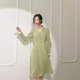 - 文艺到骨子里的长款连衣裙 法式V领简约大气撞色连衣裙 气质撞色拼接袖纯色收腰连衣裙 初秋纽扣装饰内搭长袖连衣裙