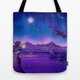 A durable,lightweight, poly poplin fabric tote bag featuring my illustration 'The Unexpected Visitor' available in two sizes, 16 x 16 inches and 13 x 13 inches. The design is printed on both sides and has a sturdy 1" wide cotton webbing strap for comfortable shoulder carrying.Manufacturing location(s)/process(es)Made in the USA